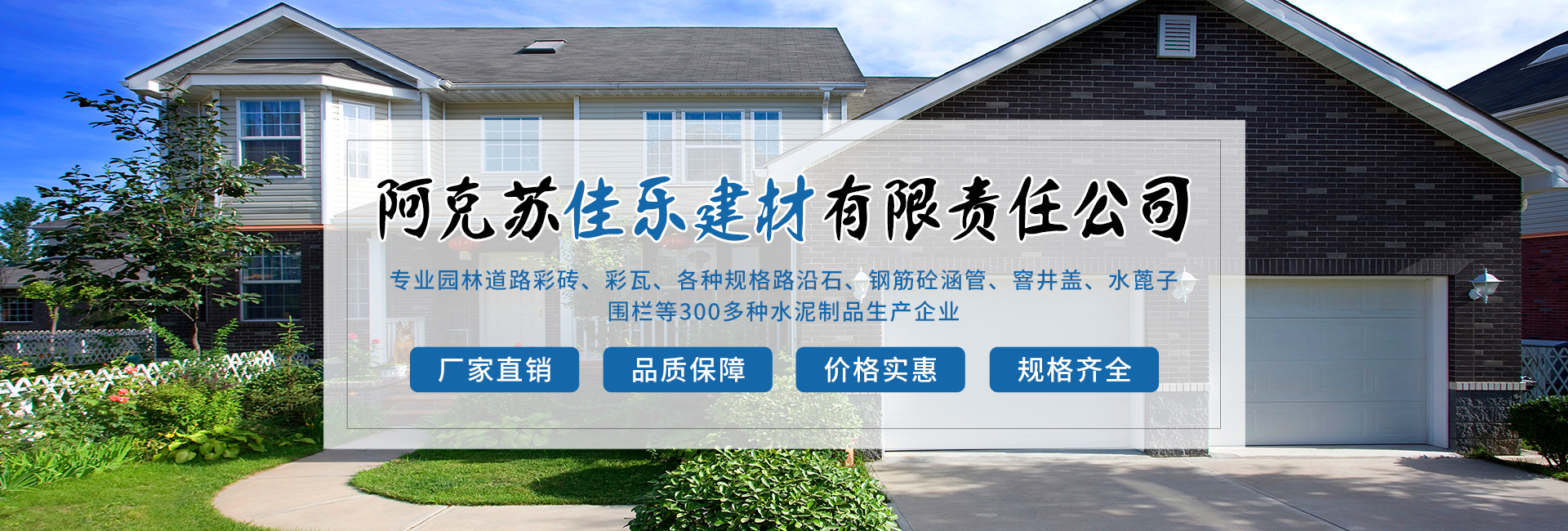 阿克蘇佳樂建材有限責(zé)任公司成立于2005年,是園林道路彩磚、彩瓦、各種規(guī)格路沿石、鋼筋砼涵管、窨井蓋、水蓖子、圍欄等300多種水泥制品生產(chǎn)企業(yè)。阿克蘇佳樂建材有限責(zé)任公司位于阿克蘇市塔南路13號(hào)(石油公司往南200米)?,F(xiàn)公司在阿克蘇市、阿瓦提縣、烏什縣、拜城縣、輪臺(tái)縣、焉耆縣等地有分廠十余個(gè),為地方城鄉(xiāng)建設(shè)添磚加瓦。 多年來,公司致力于設(shè)備的更新,新產(chǎn)品的研制,用更科學(xué)更美觀的產(chǎn)品順應(yīng)...